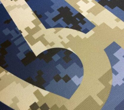 Прапор Герб України синій/камуфляж з друком виготовляємо з трьох видів тканин: прапорної сітки, атласу та габардину.